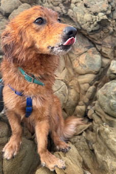 On a happier note, the crabs at Horseshoe Bay were fascinating! To spot them, I channeled my inner mountain goat and climbed carefully along the rocky mountainside. I had to watch my paws — nobody wants a crab pinching their toes! After exploring Horseshoe Bay, we collected my dad and dog sister from the beach where they’d been lounging so we could hike back to our car. I’m really glad Kona didn’t poop out on the hike back, she’s a heavy one to carry! Upon returning to the car, Kona got to ride in the back of the pickup, ears flapping in the wind, while I curled up on my human mom’s lap. Not a bad ending for a brave day.